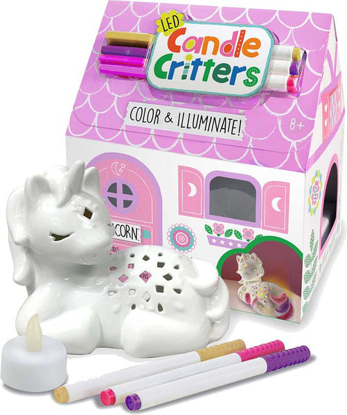 Scandinavian-inspired and generously sized, these ceramic night lights come packaged in adorable cottage-shaped boxes. Use the 3 paint markers to decorate, turn on the LED tea light and display! Each set includes a gold or silver metallic marker.
